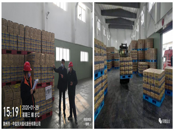 疫情如火,責任如山,充足的庫存是保障食鹽市場穩(wěn)定供應(yīng)的前提。為確保全省食鹽市場供應(yīng)不斷檔不脫銷,安徽鹽業(yè)發(fā)展公司積極響應(yīng)省鹽業(yè)集團公司號召,未雨綢繆,早安排早部署。在中鹽東興鹽化股份有限公司的積極支持下,克服運輸緊張、雨雪天氣、交通管制等不便因素,積極組織食鹽生產(chǎn)和調(diào)運。同時積極協(xié)調(diào)安徽省新型冠狀病毒肺炎疫情防控應(yīng)急指揮部,緊急辦理了應(yīng)急物資調(diào)撥專車通行證,為疫情時期食鹽運輸開辟了綠色通道,有力保障了民食工需。